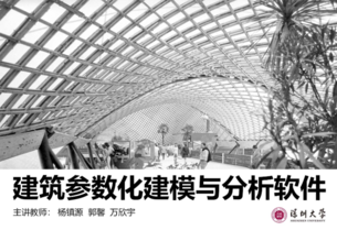 简介: 如今计算机辅助设计已经是建筑设计中不可或缺的工具,学生将学习基于犀牛(Rhino)软件平台及其参数化工具(Grasshopper),包括曲面建模、参数化建模,要求学生能掌握软件技法,熟悉建模思维和形成一定的软件操作动手能力。 本课程拟作为深圳大学数字建构课程的配套基础课程,其他专业与学校的同学可根据自身实际情况进行选择,不必参与数字建构课程。